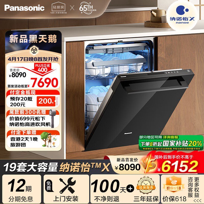 松下黑天鹅嵌入式洗碗机65周年旗舰款促销