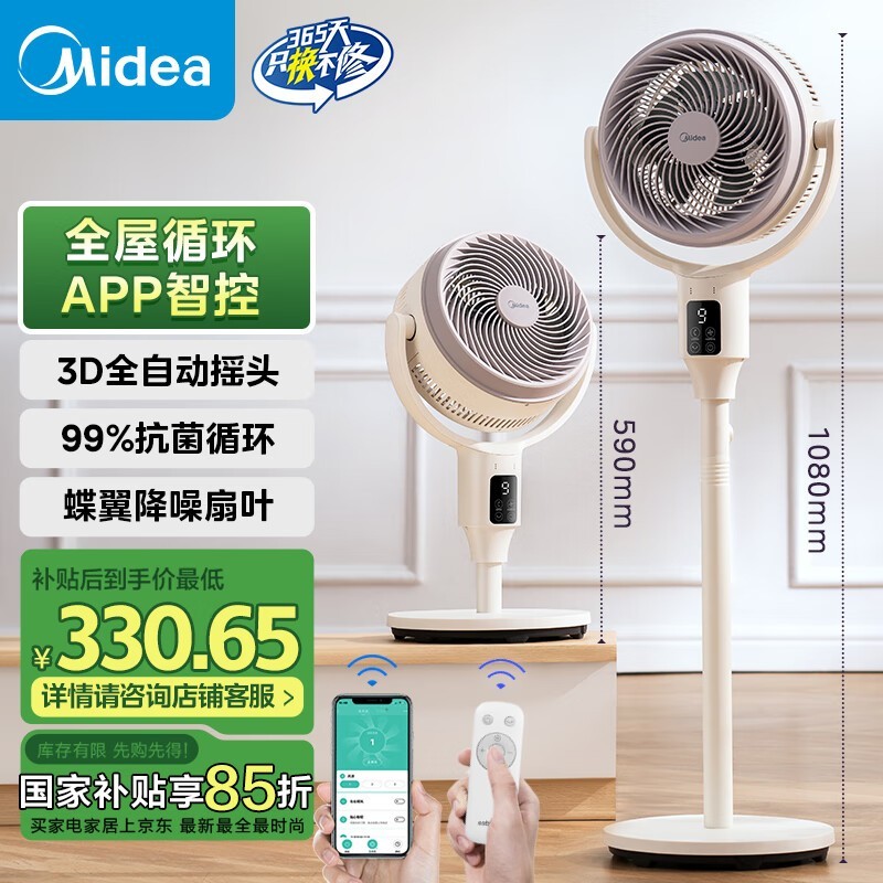 美的GDG24TZR空气循环扇直流变频低噪舒适送风