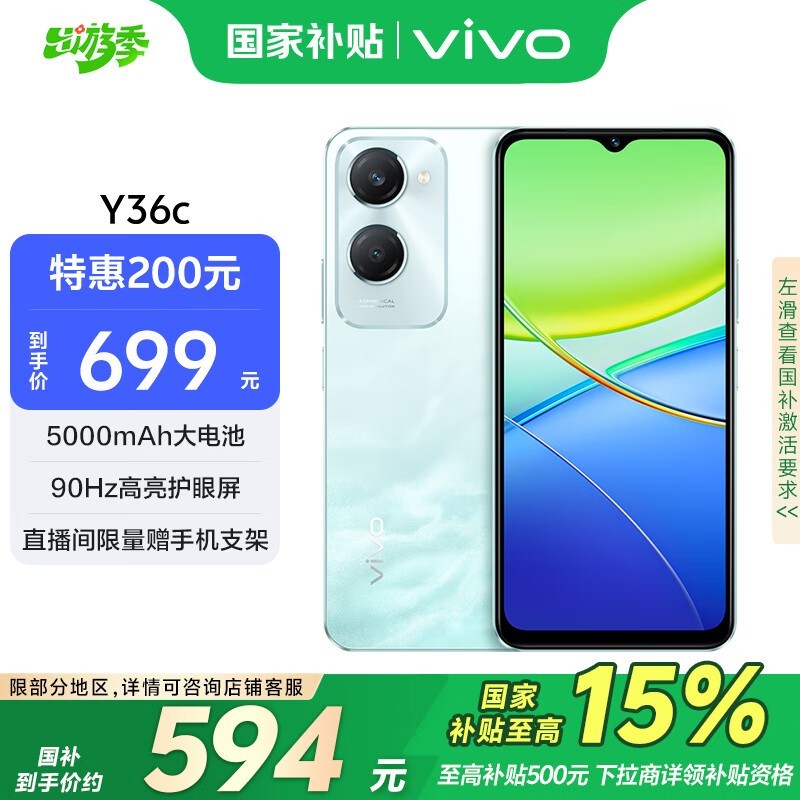 vivo Y36c 5G手机8GB+128GB远山青京东促销到手594元