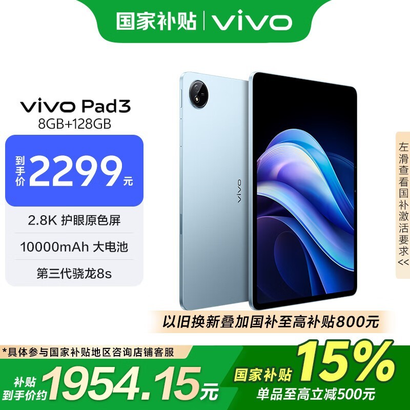 vivo Pad3平板电脑春潮蓝 12.1英寸2.8K 144Hz高刷屏
