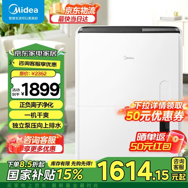 美的除湿机家用多功能,京东下单低至1839元