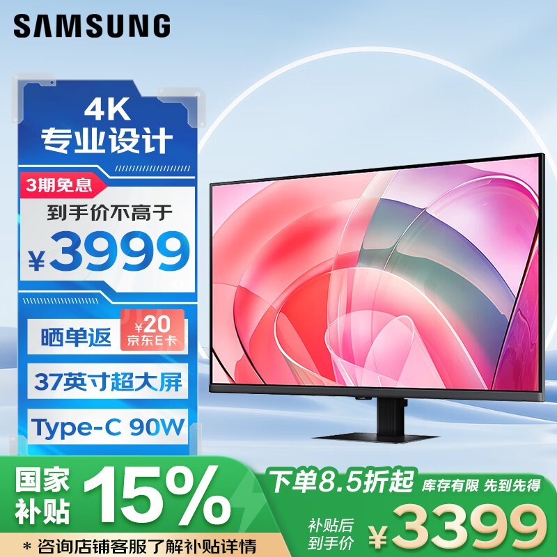 三星37英寸4K显示器活动价低至3277元