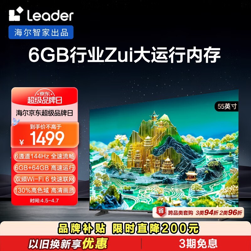Leader极境L55F66 55英寸4K电视京东1499元