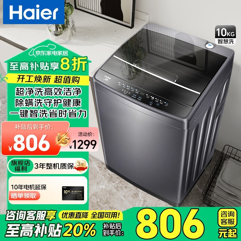 海尔EB100M30Pro1波轮洗衣机10公斤大容量清洗衣物更干净