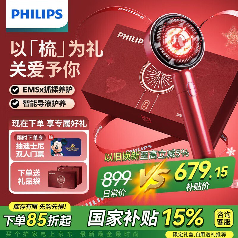 飞利浦EMSPPM5303H智能按摩梳礼盒装促销