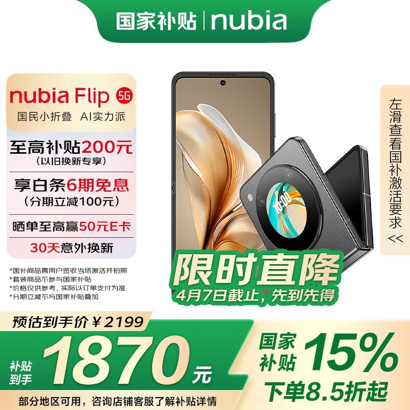 努比亚Flip5G折叠屏手机京东促销仅1808元