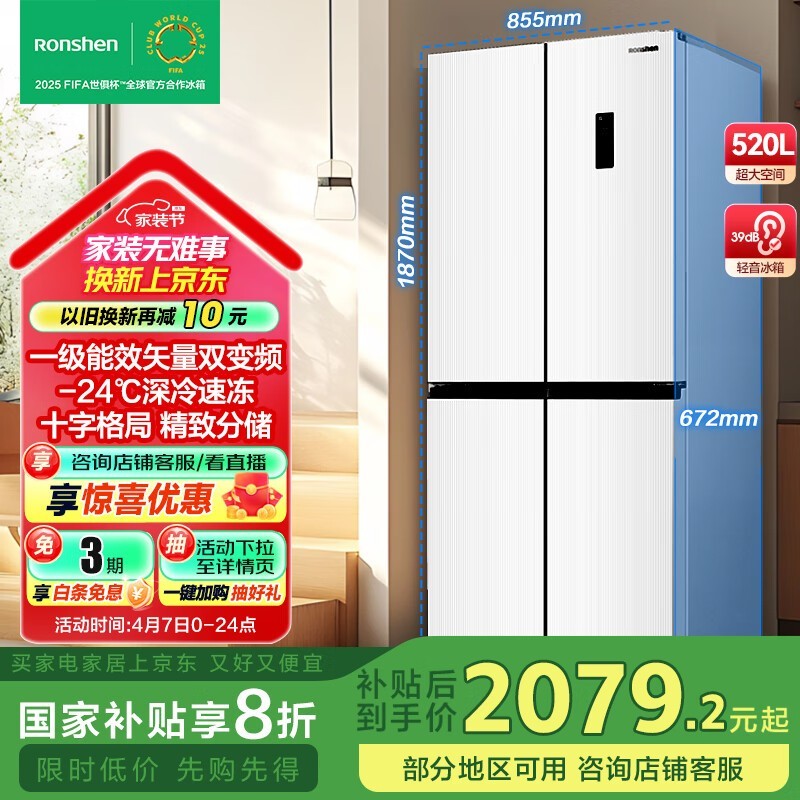 容声520升十字对开四开门冰箱,京东活动价1915元