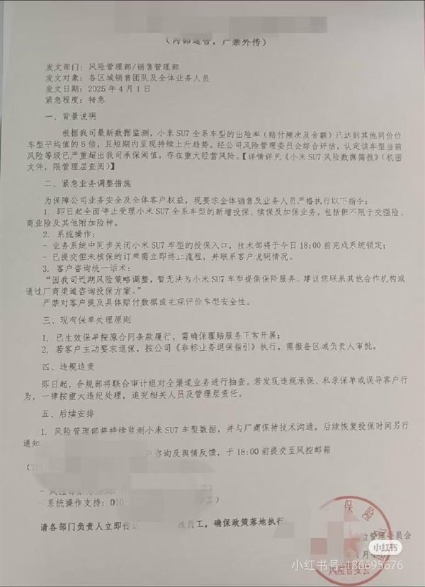 目前SU7车型的投保服务平稳正常,网传信息严重失实;此外,“SU7出险率同价位车型数倍”的谣言,同样毫无事实依据。
