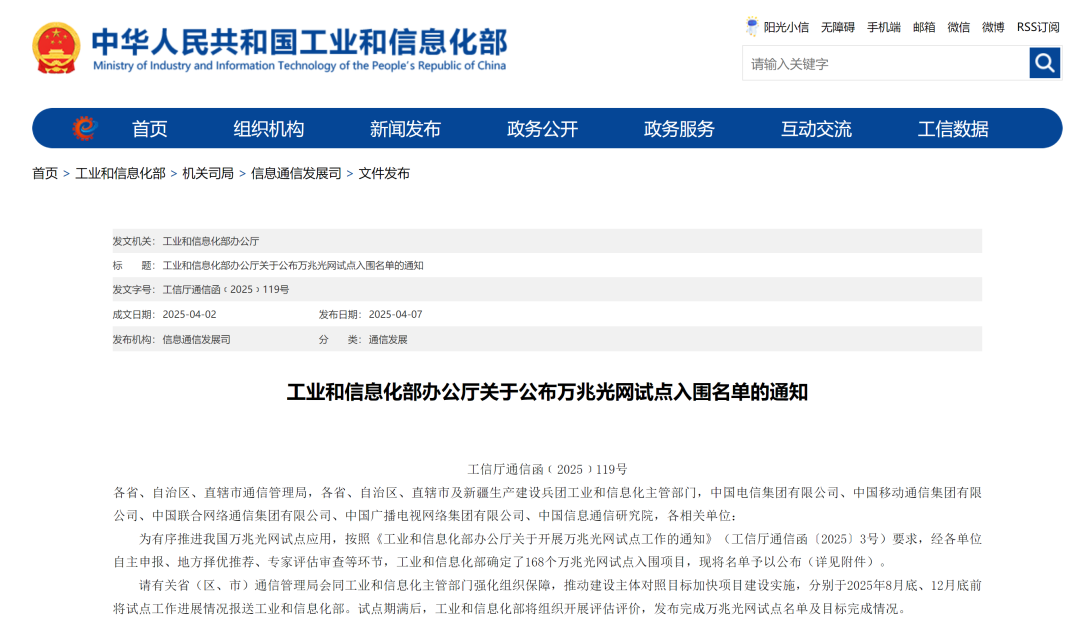 日前,工业和信息化部办公厅发布万兆光网试点入围名单,共168个。其中万兆光网园区和工厂占比达到62.5%,这一占比充分彰显了万兆光网在工业及产业园区领域的关键价值与巨大发展潜力。