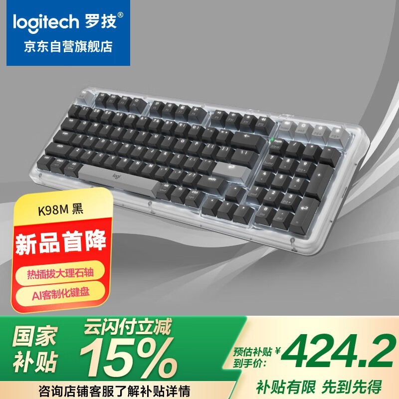 罗技Logitech琥珀系列K98M三模机械键盘石墨黑大理石轴单光