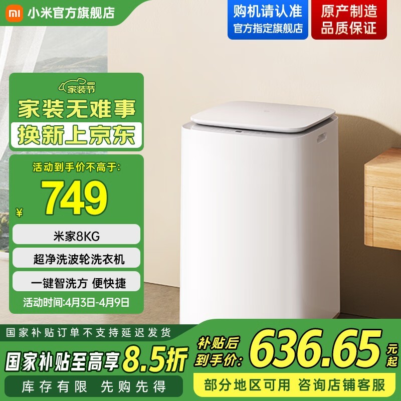 小米米家8kg波轮洗衣机 国补后636元