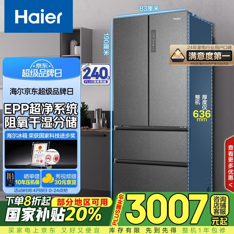 海尔510L多门冰箱BCD-510WGHFD59S9U1风冷变频京东特惠