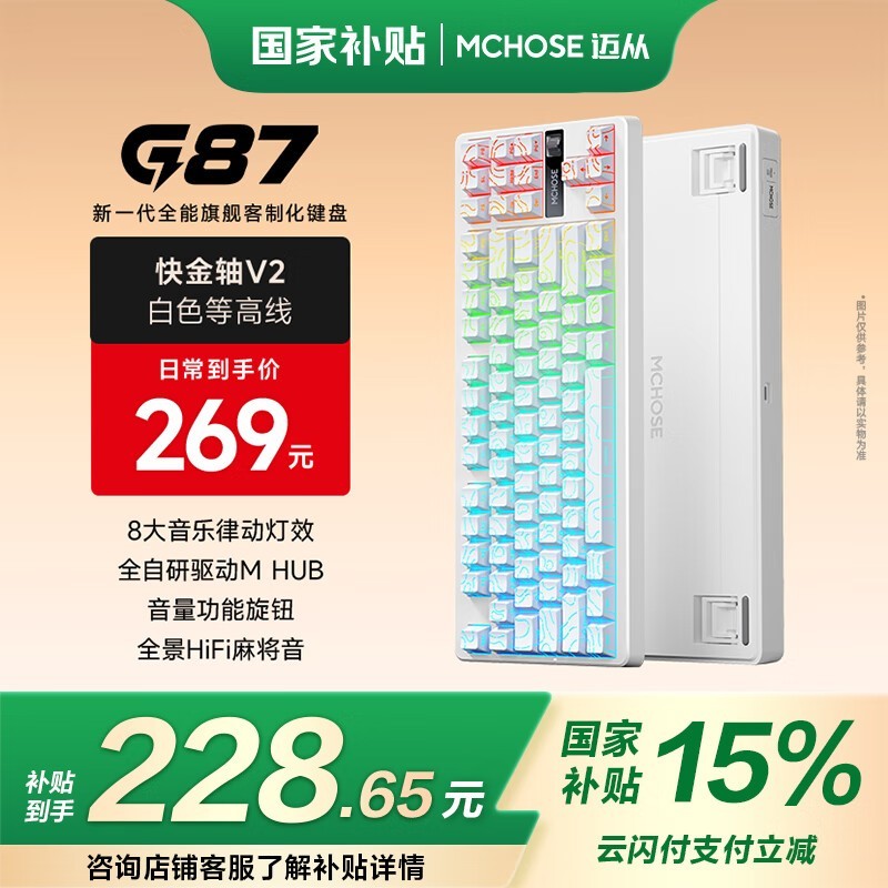 迈从G87三模机械键盘,快金轴V2,到手197元