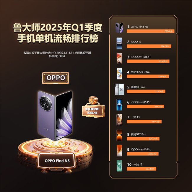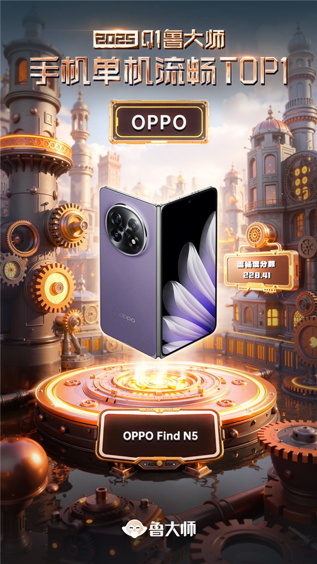 如此软硬协同下,Find N5最终靠着228.41的流畅分站稳手机单机流畅第一。