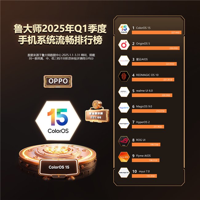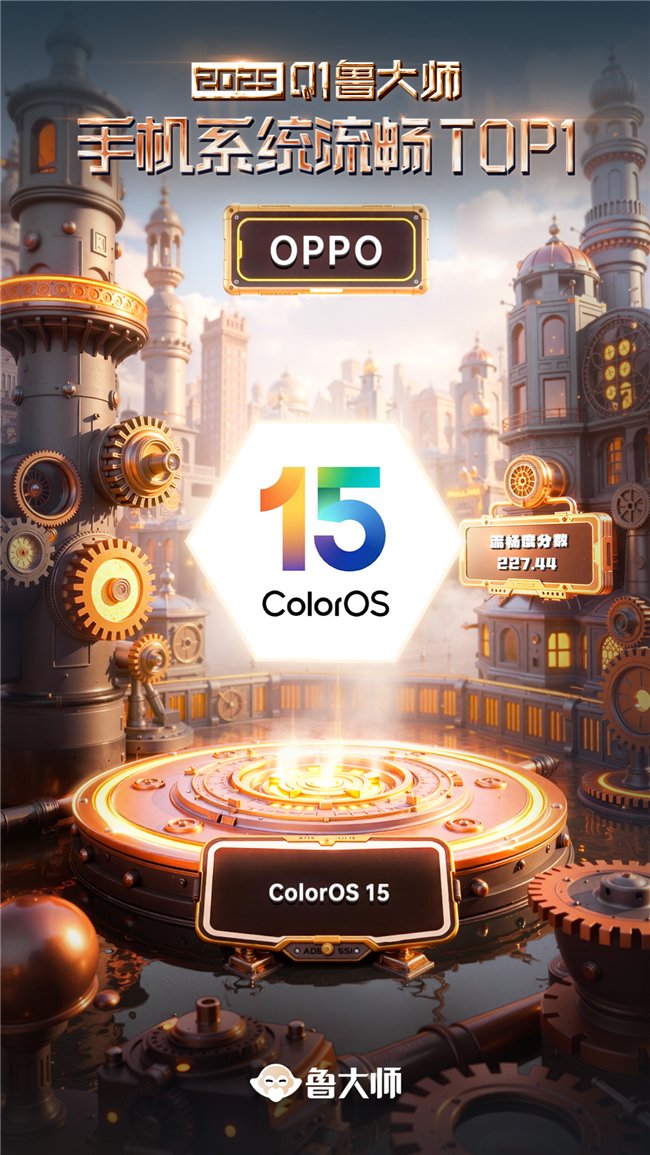 ColorOS 15最终以227.44的流畅分数成功卫冕系统流畅榜。