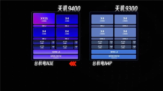 至于天玑9400,对比上代,依然是全大核设计,不过最大的超大核心更换成ARM最新的X925,所有核心的频率进一步拉高,最终性能分数定格在1152277,位居第二。