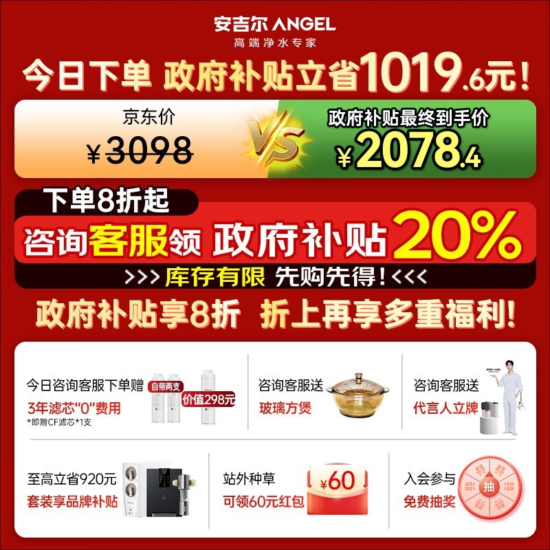 ANGEL玉龙Pro1200G净水器 原价2598元到手1867元