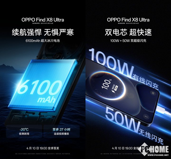 续航方面,采用了6100mAh大容量电池,支持零下20度的极寒环境使用,大概率也能在这个环境中充电。据OPPO方面称,其能够支持27小时的视频播放续航。快充方面,提供了100W有线超级闪充和50W无线超级闪充,两种快充方式均有着很快的充电速度,都可以作为日常充电方式。
