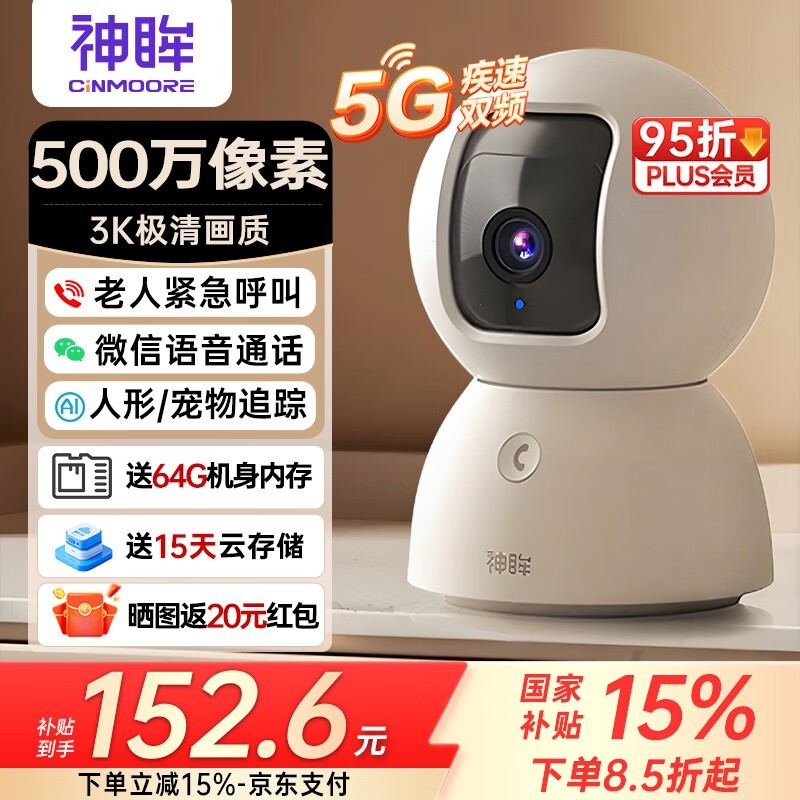 神眸Cinmoore摄像头老人看护,135元到手
