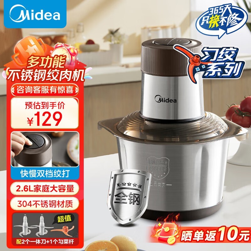 美的绞肉机MJ-JD25B多功能料理机仅73.32元