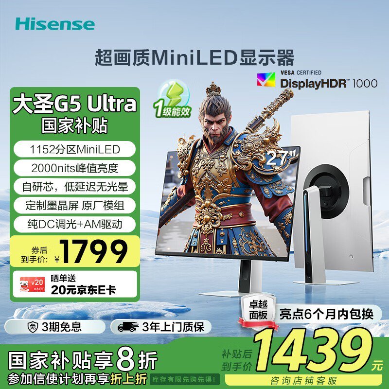 海信Hisense大圣G5MiniLED显示器27英寸2K高刷京东特惠