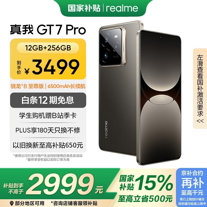 realme真我GT7Pro12GB+256G星迹钛京东国补仅2778元