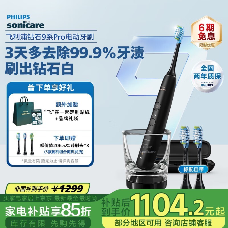 飞利浦钻石9系Pro电动牙刷京东优惠低至883元