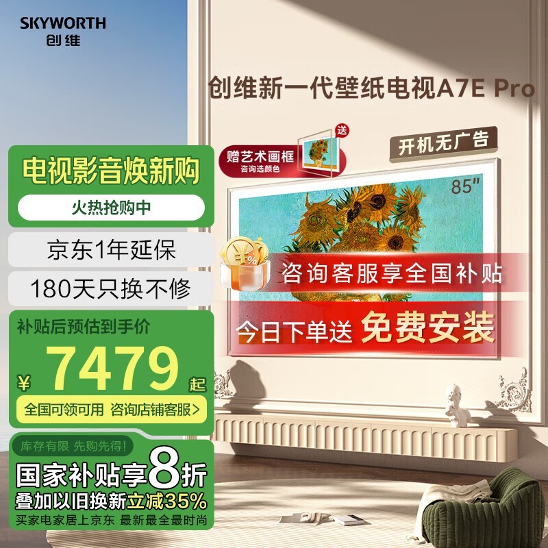 创维壁纸电视85A7E Pro超大屏4K高清京东特惠