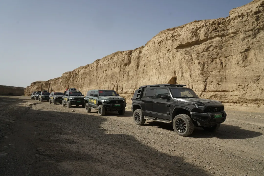 2024年,在原子弹爆炸成功六十周年之际,东风猛士917作为保障车参与了"重走罗布泊"活动。这次历时12天、全程4358公里的穿越,成为检验车辆性能的绝佳舞台。在整个穿越过程中,10台东风猛士917在辐射强烈的戈壁滩连续高强度运行,穿越原子弹爆炸区、楼兰古城遗迹等无人区,顺利完成保障任务,故障率为零。