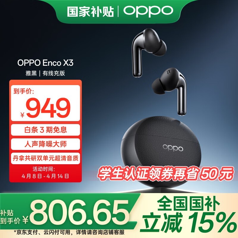 OPPO Enco X3蓝牙耳机京东促销低至701元
