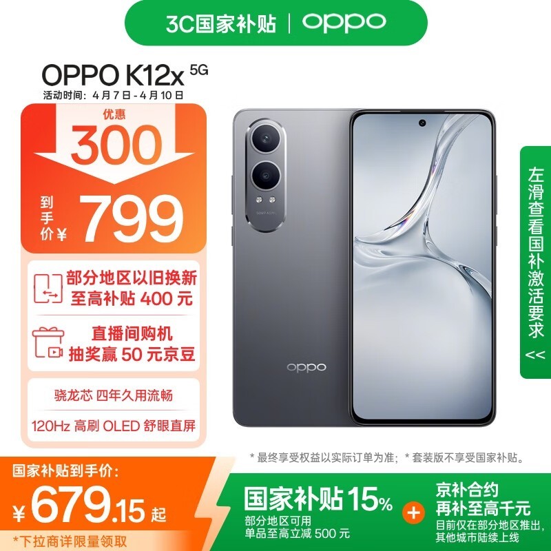 OPPO K12x 5G手机8GB+128GB,低至623元