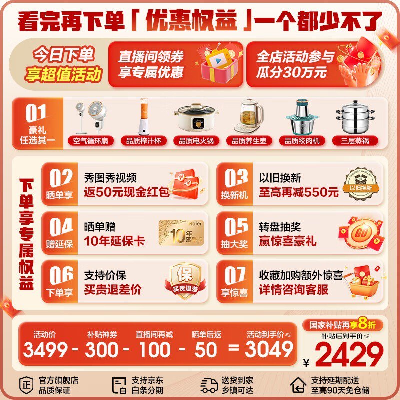 海尔小红花冰箱488升超薄多门京东特惠2379元