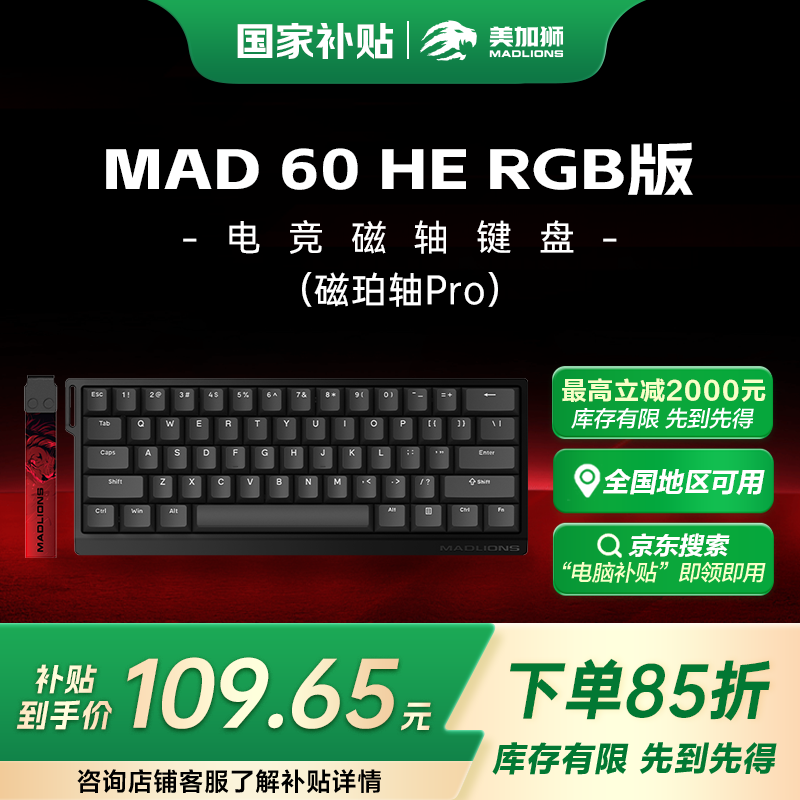 美加狮MAD60HE机械键盘磁珀轴ProRGB灯光61键有线仅98.6元