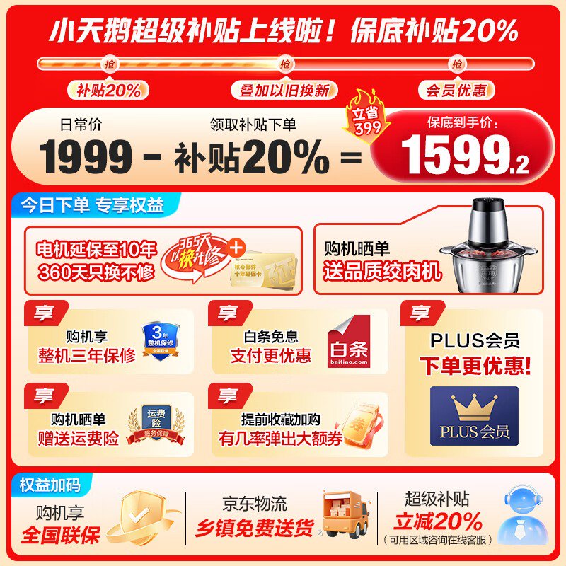 小天鹅滚筒洗衣机TG100V23PRO京东促销历史新低至1418元