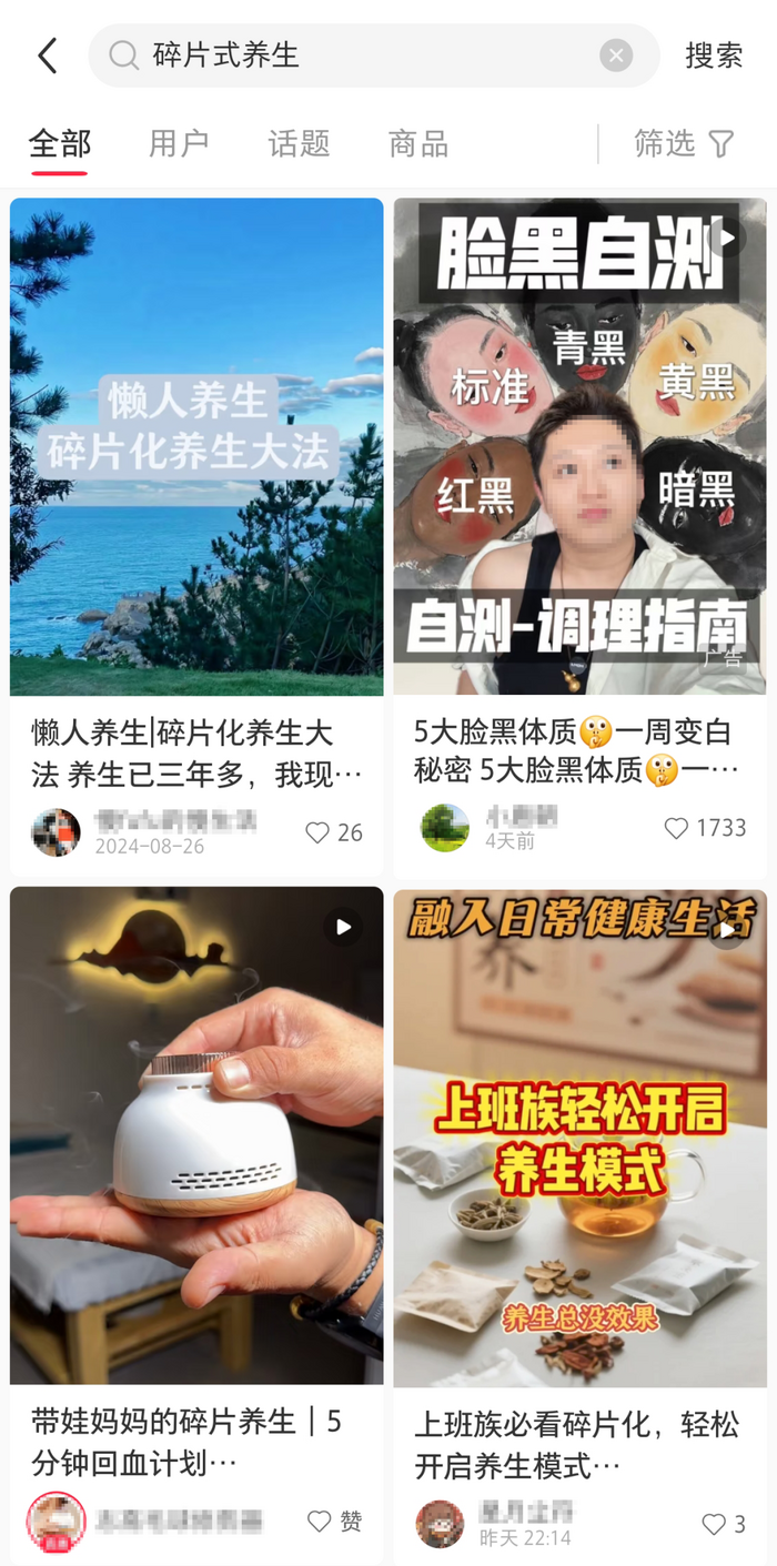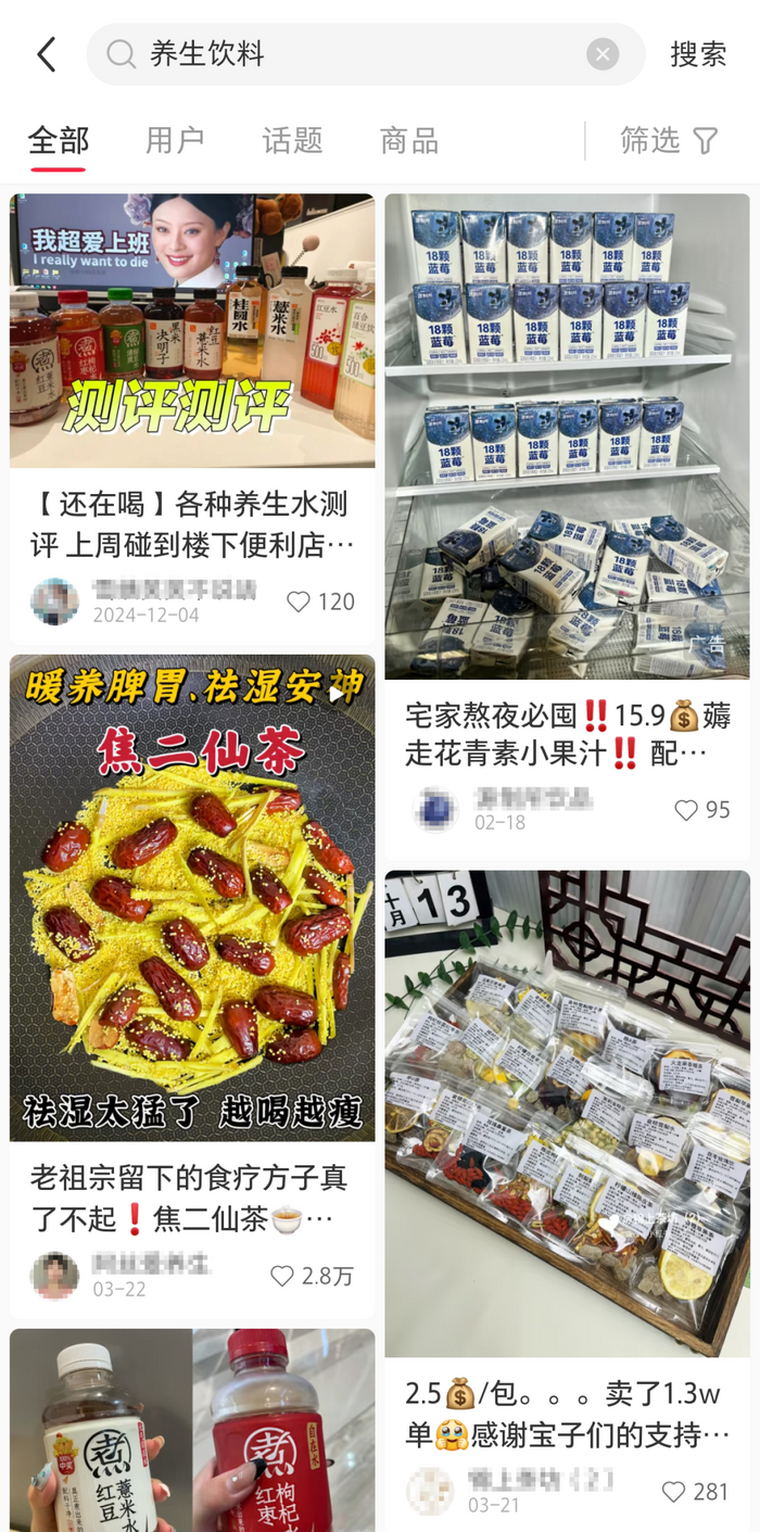 在小红书上,“养生饮料”相关的笔记已经超过45万篇,“碎片式养生”的内容也有近万篇。