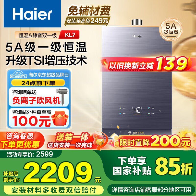 海尔云程U1燃气热水器16L大容量智能恒温促销中
