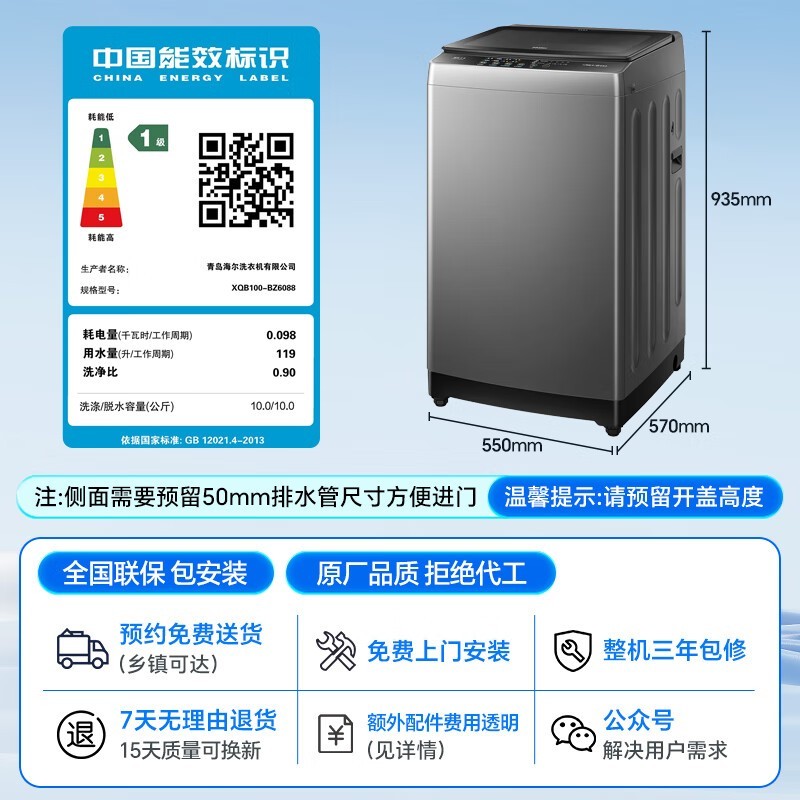 海尔Haier XQB100-BZ6088波轮洗衣机直驱变频超值促销