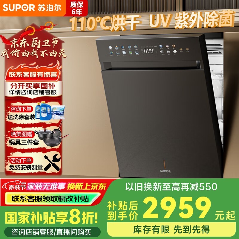 苏泊尔WDQ1506B嵌入式洗碗机享国家补贴8折优惠到手2959元
