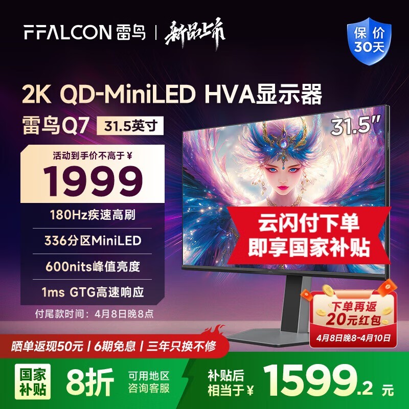 雷鸟Q7电竞显示器促销,原价2299现1949