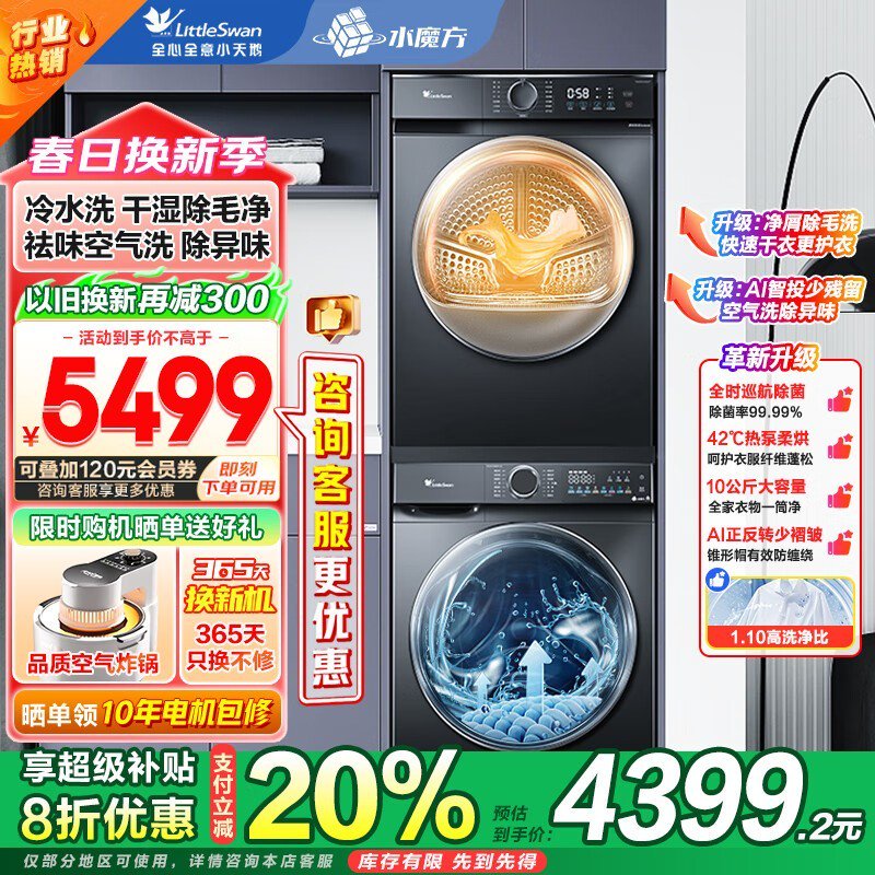 小天鹅水魔方热泵洗烘套装10KG大容量京东促销到手3891元