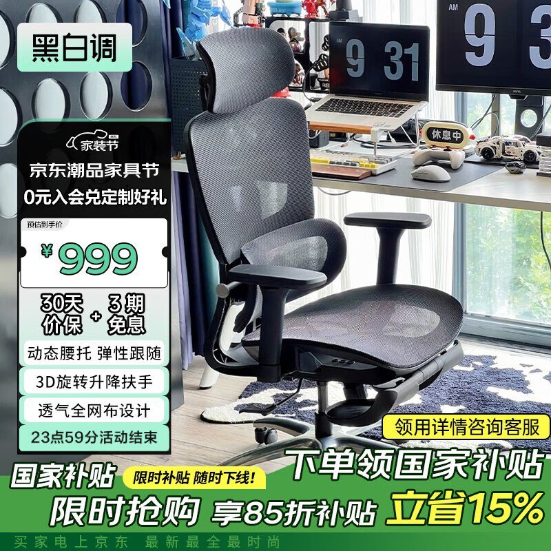 黑白调E2人体工学椅京东优惠价787元