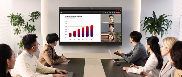 针对“使用不方便,设备不会用”的痛点,新品延续可立享一贯体验,针对“使用不便”痛点,用户走进会议室、插上按钮或开启App,从笔记本一键发起会议,仅需7秒即可加入并开始分享。强大的无线BYOM功能无缝连接Teams、Zoom、腾讯会议等主流平台,协作流畅自如。