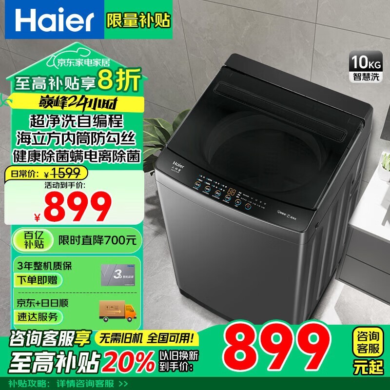 海尔XQB100-Z6088波轮洗衣机10KG大容量超值促销