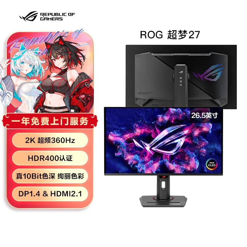 华硕ROG XG27ACDNG显示器2K分辨率360Hz刷新率仅4922元