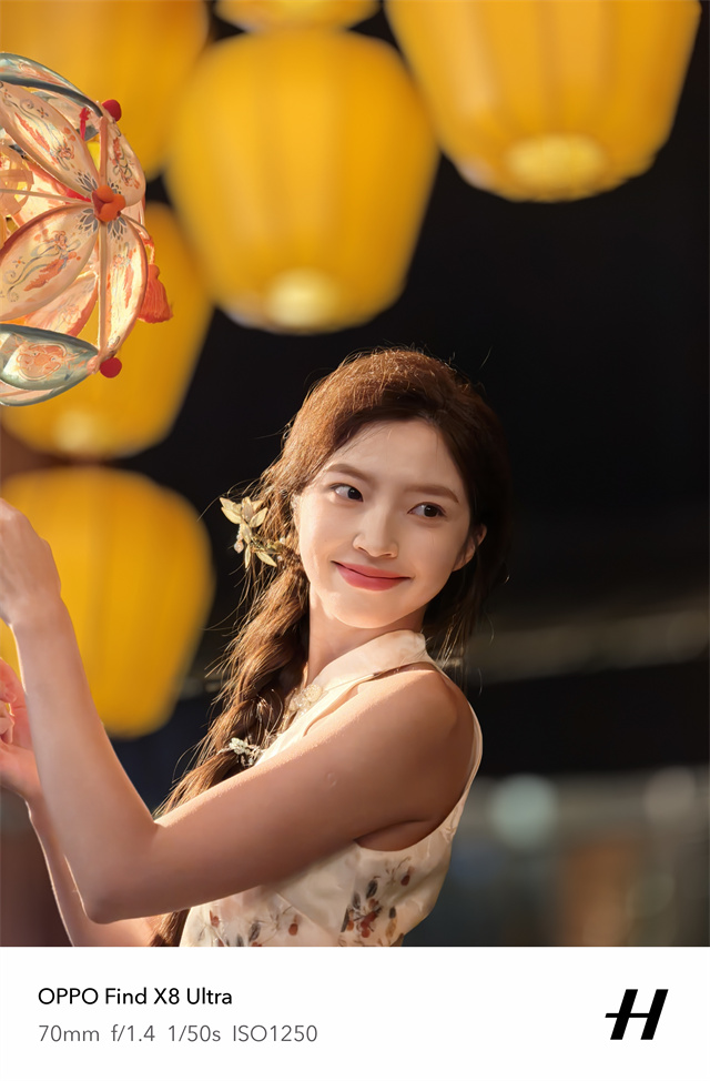 不仅仅是夜景人像肤色更自然,OPPO Find X8 Ultra在计算摄影方面次进化,这一次采用了全新空间计算景深解决方案,主要就是为了改善人像的虚化表现,从够样张能够看出,OPPO Find X8 Ultra可以提供更高精度的发丝虚化,并且在有发丝被误虚化的情况下进行额外的去修复处理,拍摄出的人像有着更好空间感,更好的计算虚化效果不止人像本身,还有背景景色的虚化,所以在软件上它能够还原哈苏镜头的光斑效果,背景的灯光在虚化后也更有层次感,光斑更加灿烂。