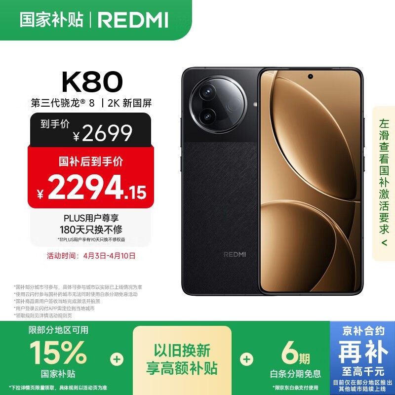 Redmi红米K80 5G手机京东优惠价2279元抢购