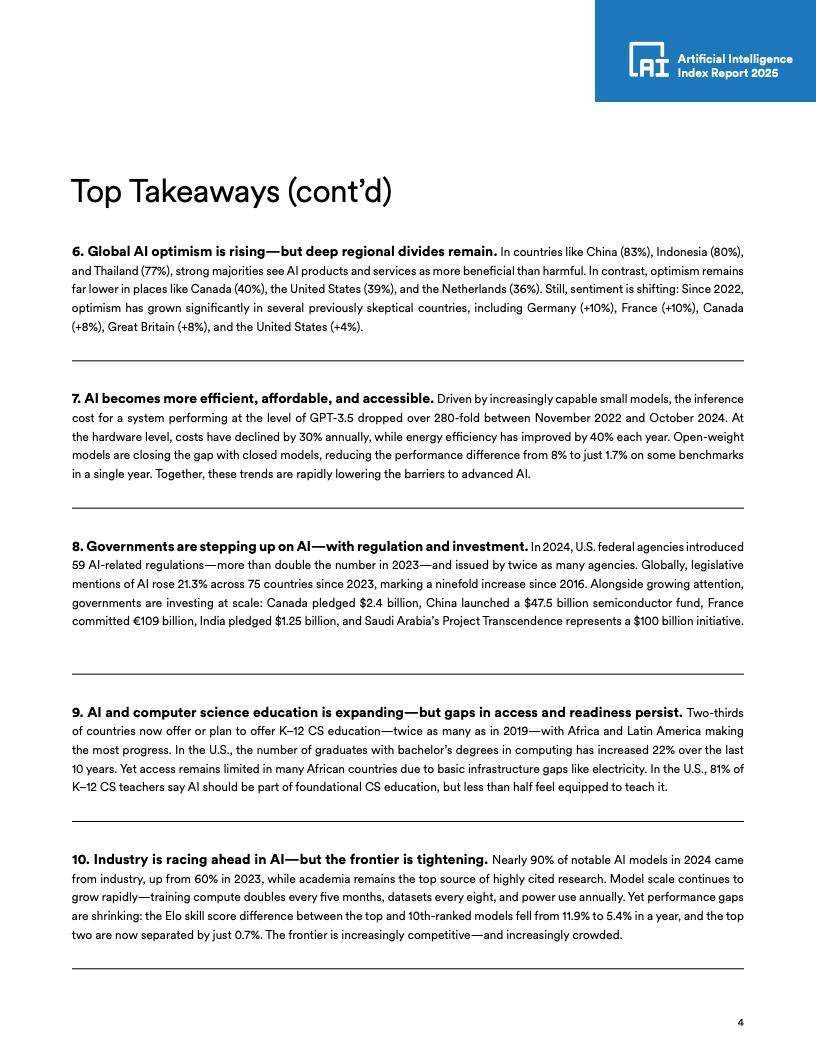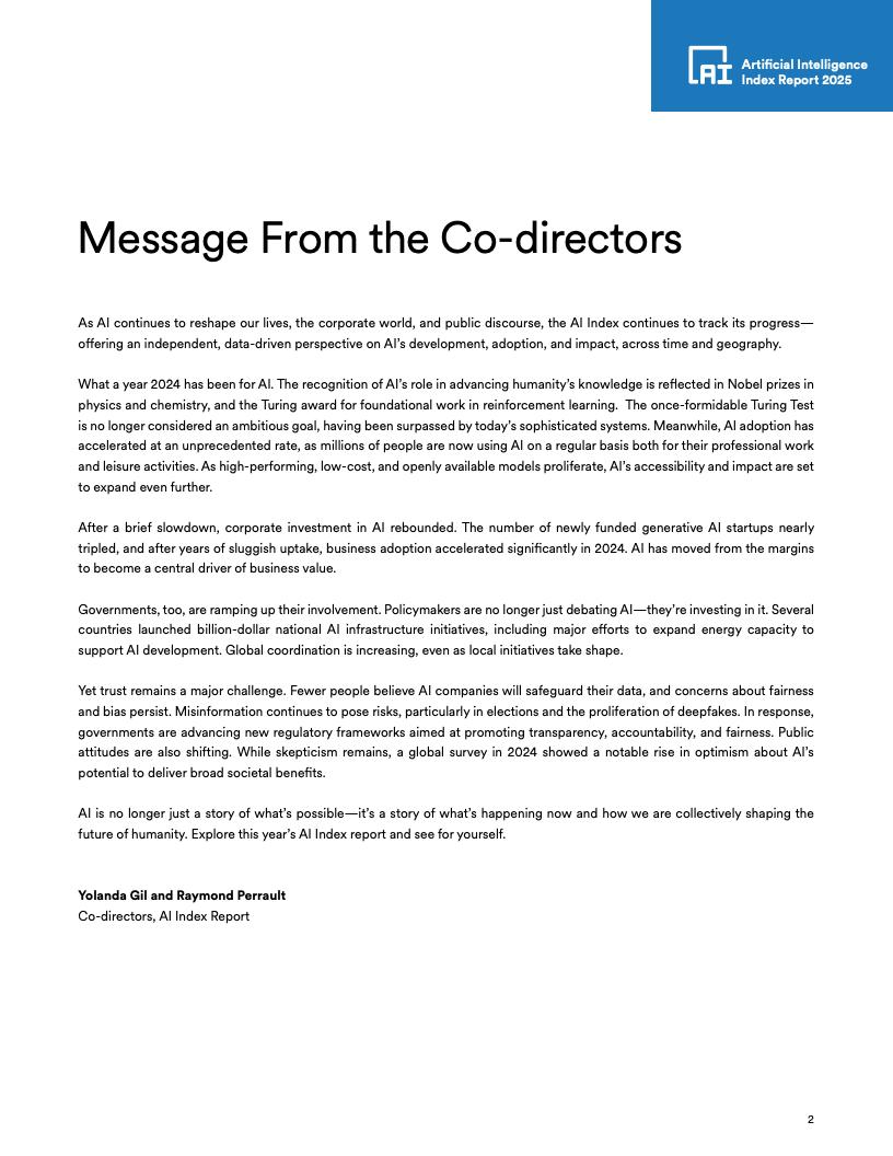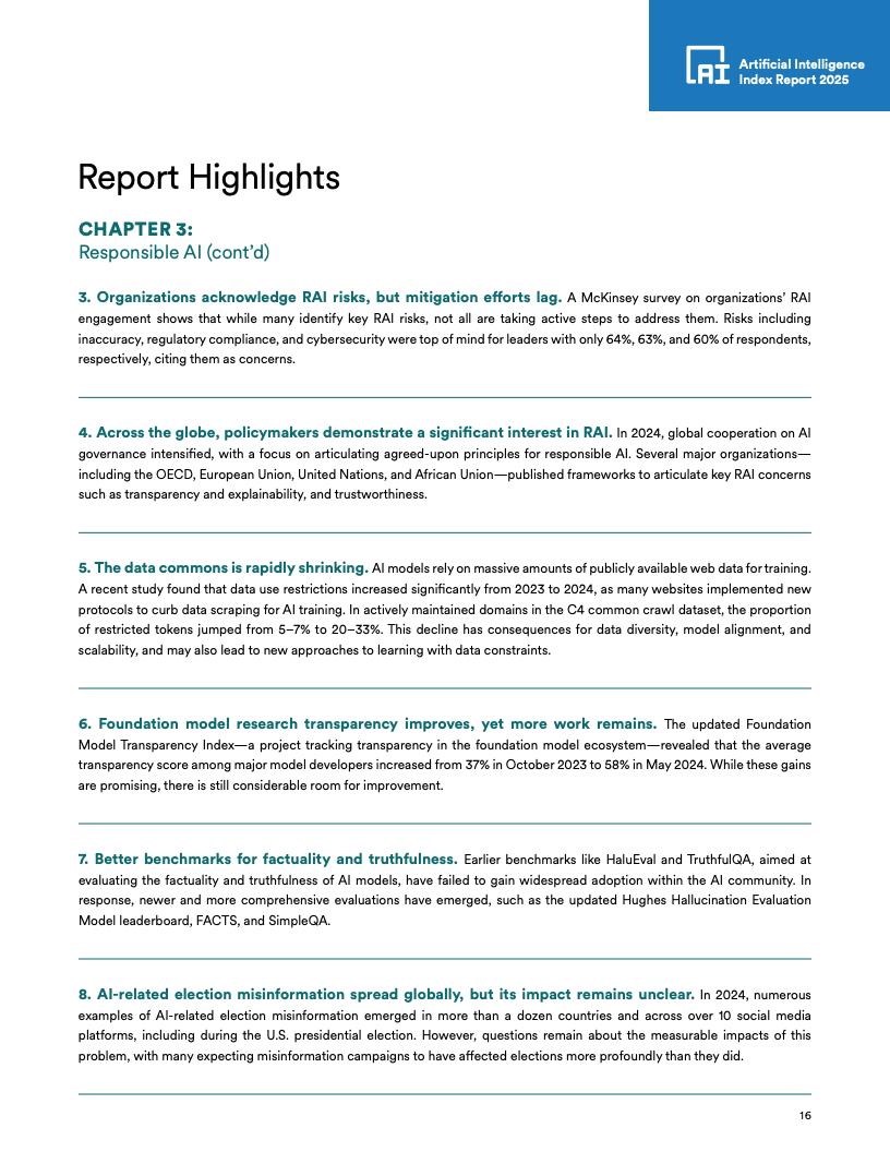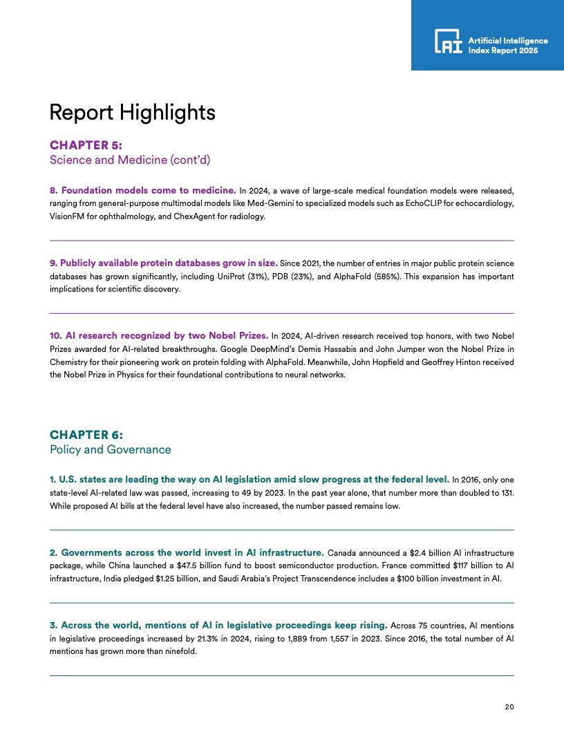 全球立法关注度:自2023年以来,全球75个国家立法中提及AI的次数增加了21.3%,自2016年以来增长了九倍。