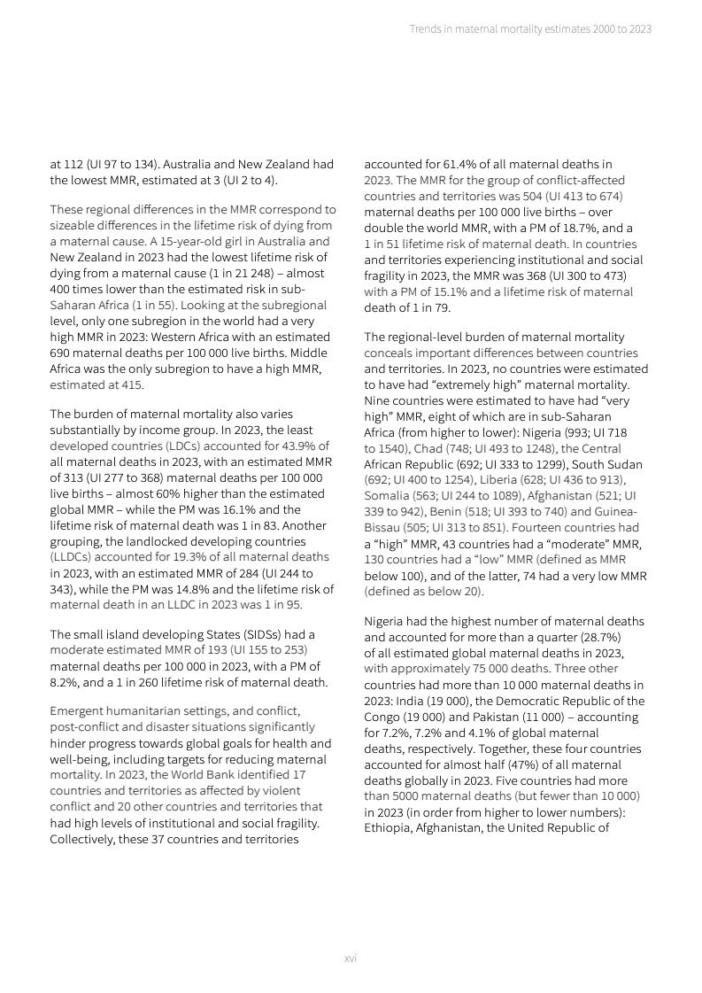 撒哈拉以南非洲区域在2015年后孕产妇死亡率出现显著下降,但在2023年仍占全球孕产妇死亡负担的约70%。