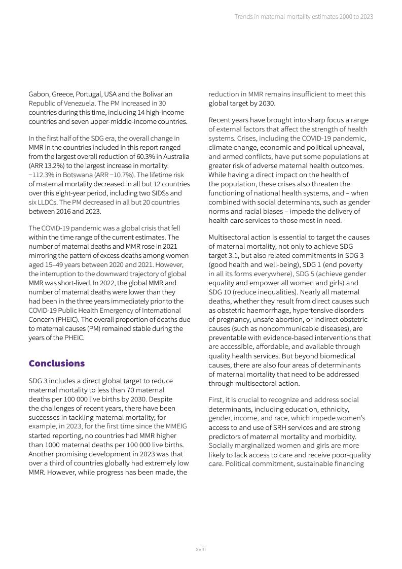 为实现2030年SDG目标,全球孕产妇死亡率需每年下降约15%,而目前的年下降率约为1.5%。