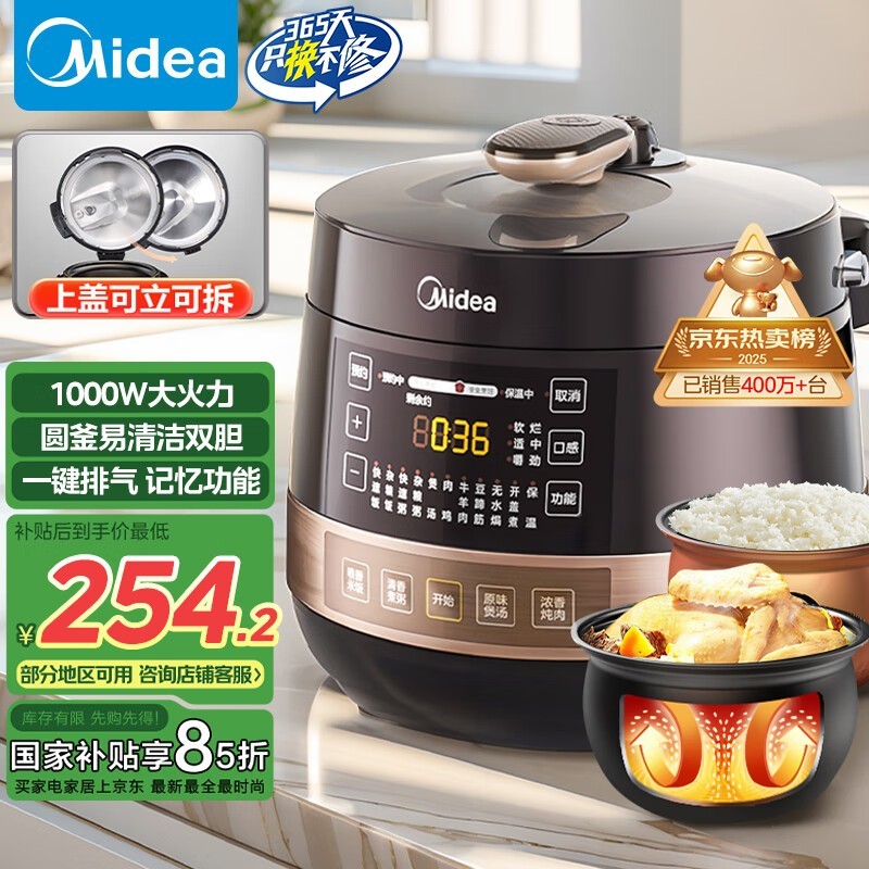 美的MY-YL50Easy203电压力锅4L一锅双胆京东146元到手